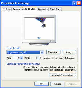 Cet économiseur d'écran lance plusieurs petites séquences animées sur votre écran afin de passer le temps. Elles présentent les deux héros de l'aventure sous les traits qui leur sont propres.